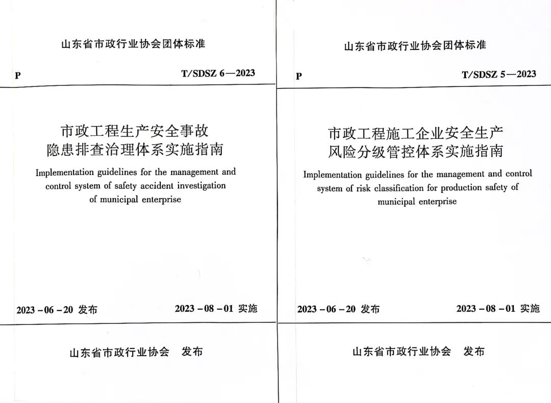 “标准决定质量,有什么样的标准就有什么样的质量,只有高标准才有高质量。”青岛城投集团深入学习贯彻习近平总书记关于安全生产、标准化工作的重要论述精神,近日,城投集团与青岛市市政工程质量安全监督站共同主编两项省级行业团体标准《市政工程安全事故隐患排查治理体系实施指南》(以下简称《隐患排查指南》)《市政工程施工企业安全生产风险分级管控体系实施指南》(以下简称《风险管控指南》),已正式发布实施。