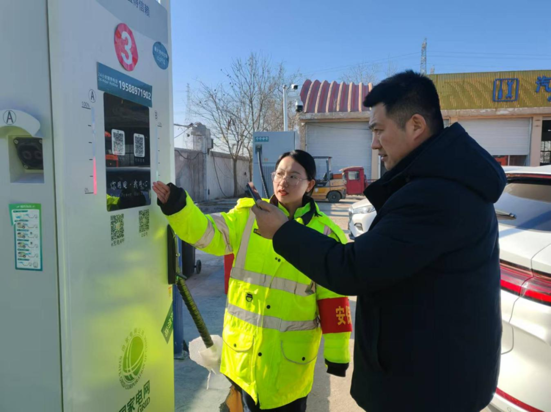(图为协助司乘使用充电桩)