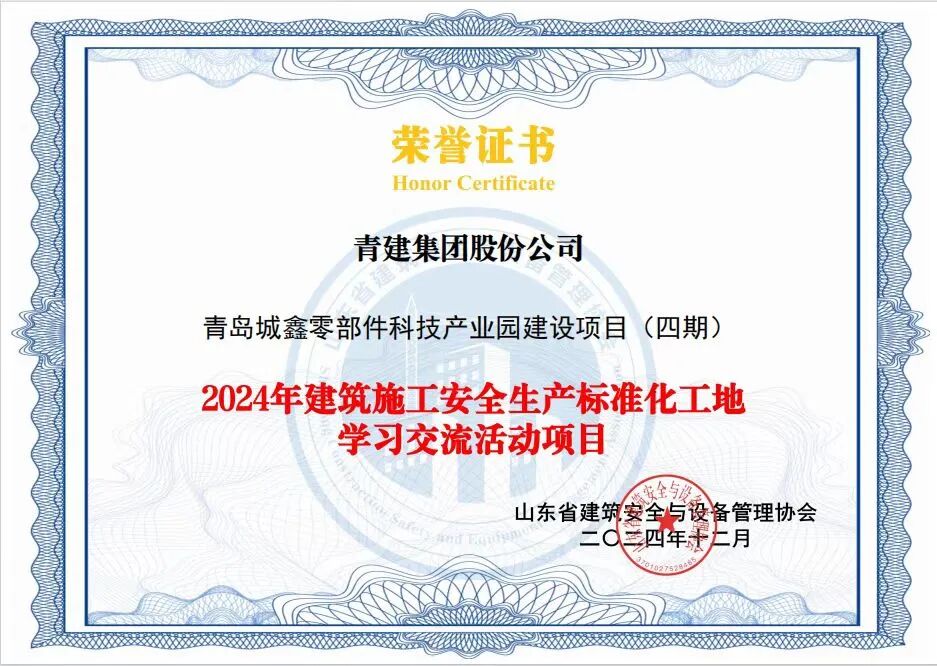 青岛城鑫零部件科技产业园建设项目(四期)被山东省建筑安全与设备管理协会评为2024年建筑施工安全生产标准化工地学习交流活动项目