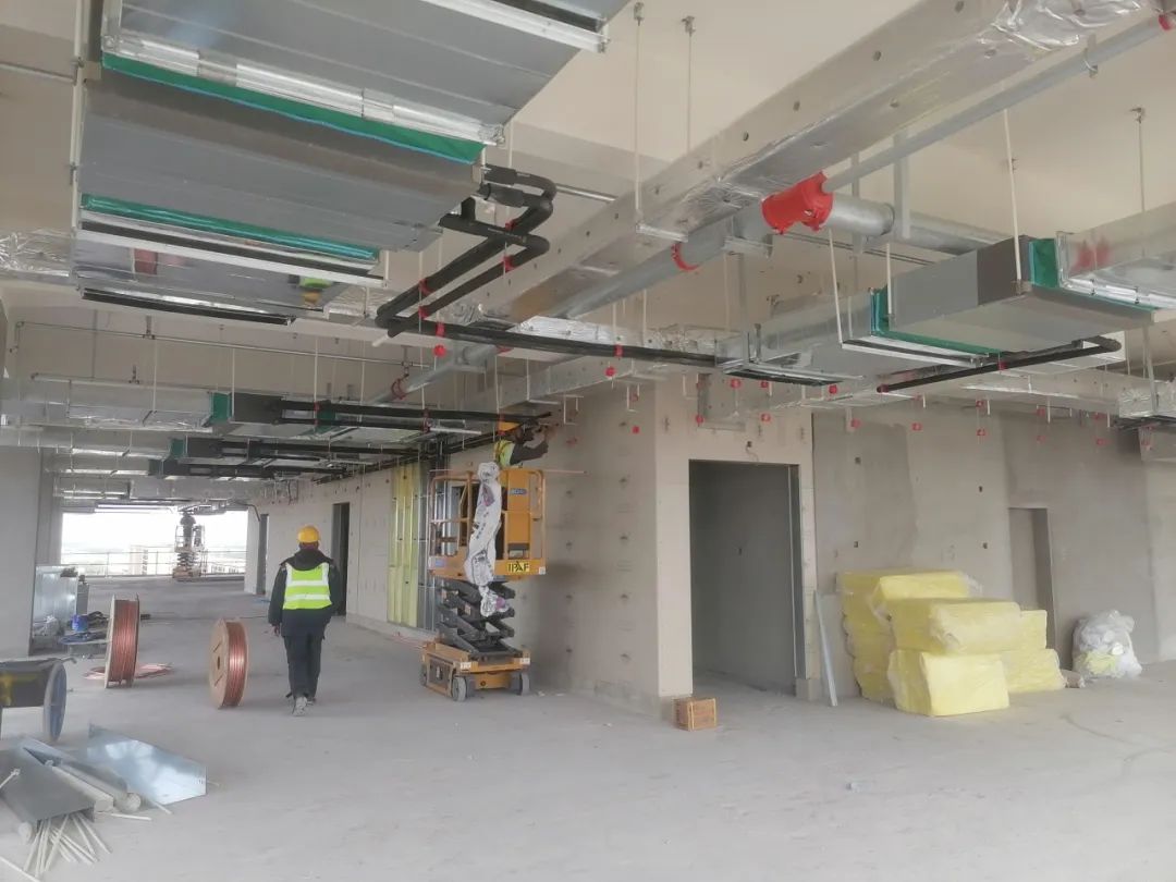 莱西南部新城各在建项目变“假期”为“工期”,在确保质量和安全的基础上,全力以赴推动工程提速提效。莱西国际招商中心一期工程,约150余名施工人员奋战在一线工地,全方位推进室内抹灰、水、电、暖通、空调、消防等桥架管道安装,并同步开启外幕墙埋件施工;青岛科技职业学院一期工程项目各参建单位倒排工期,优化工序,高效推进6、7号楼室内精装施工,截至目前主体工程进度已完成95%,朝着5月主体工程完工的目标冲刺。
