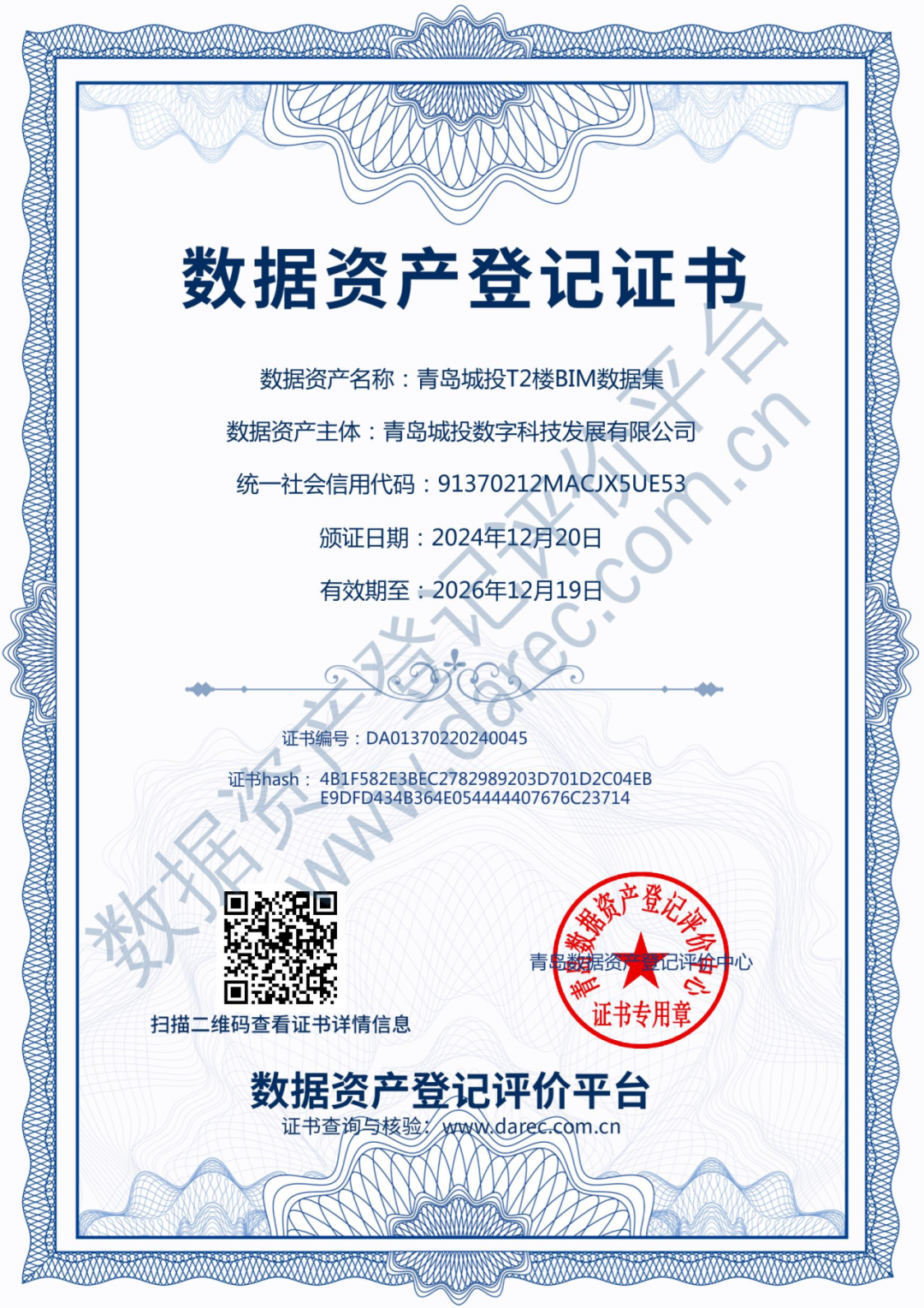 12月21日,青岛城投集团旗下数科公司将数据资产计入公司财务报表,圆满完成了“青岛城投T2楼BIM数据集”数据资产入表工作,成为青岛市首例实现BIM领域数据资产入表的成功案例,为后续数据资产业务拓展打下坚实基础。