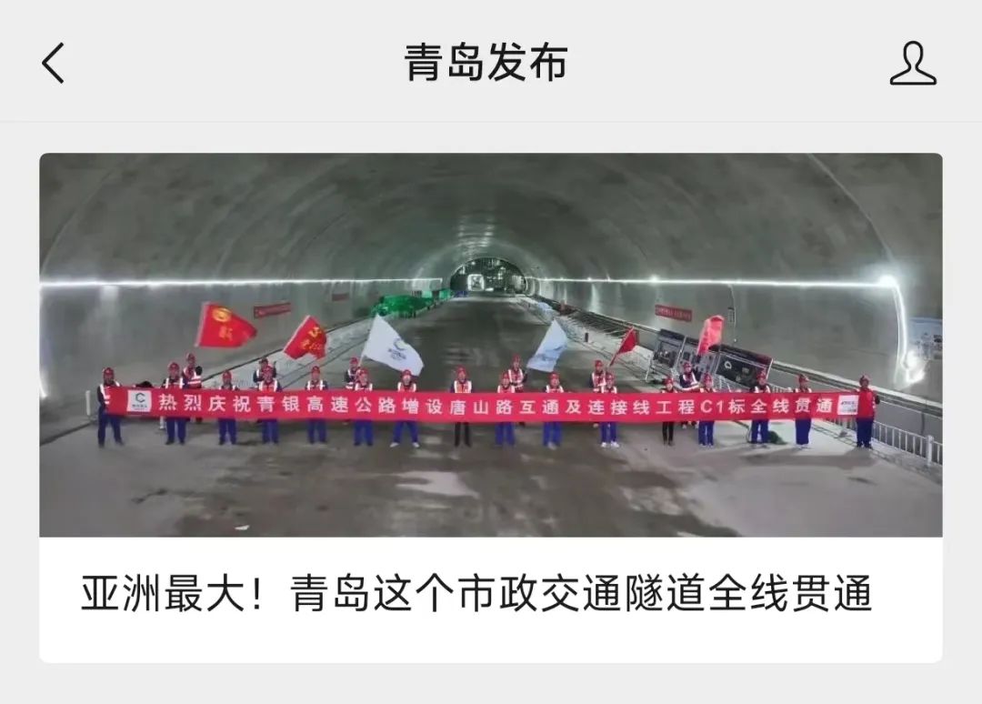 亚洲最大!青岛这个市政交通隧道全线贯通