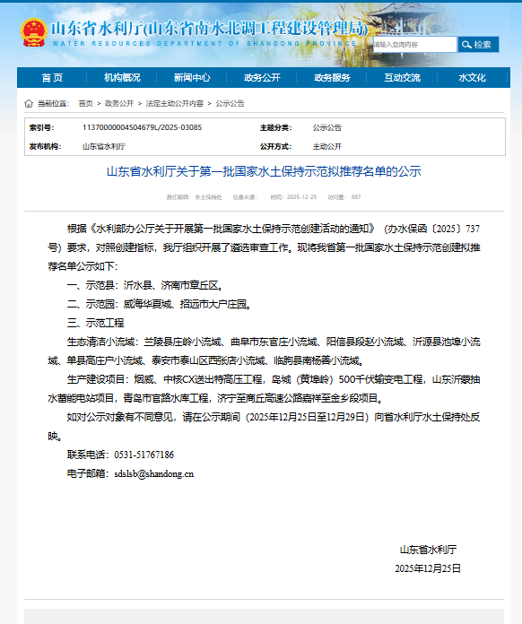 (图为山东省水利厅公示公告)