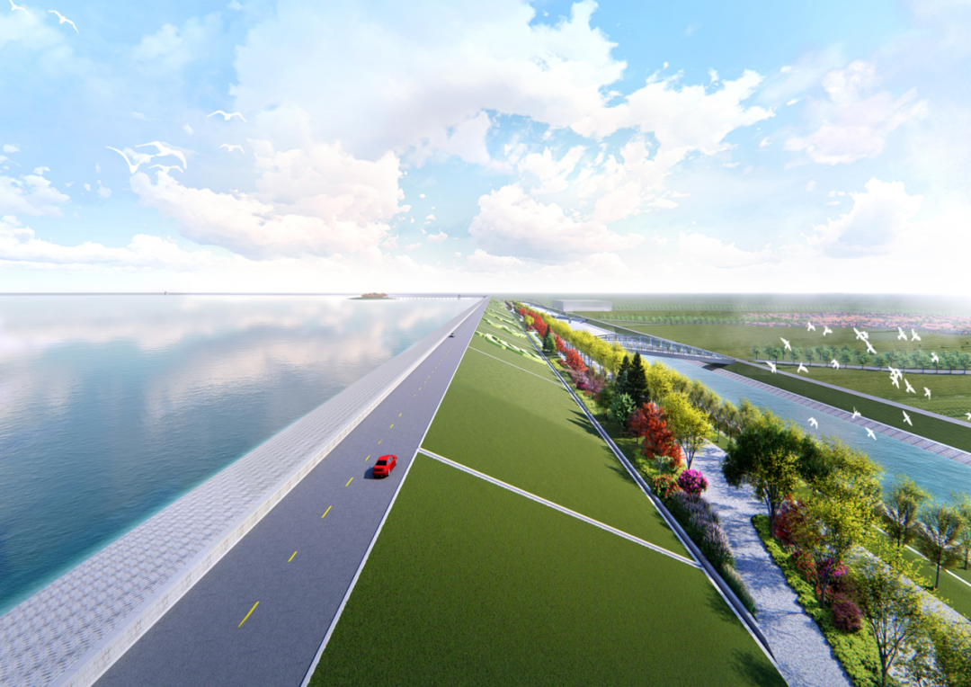 (图为官路水库坝体绿化与水土保持效果图)
