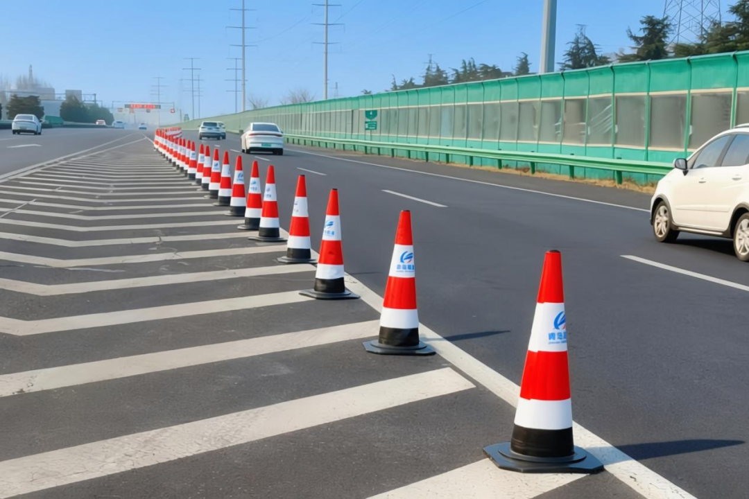 (图为青新高速布设锥形帽矩阵)