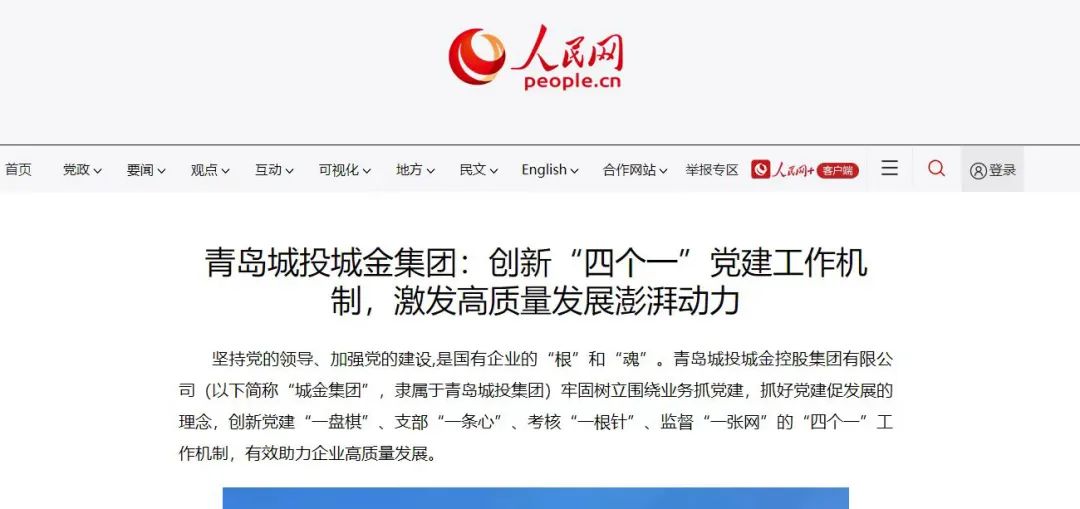 【人民网】青岛城投城金集团:创新“四个一”党建工作机制,激发高质量发展澎湃动力