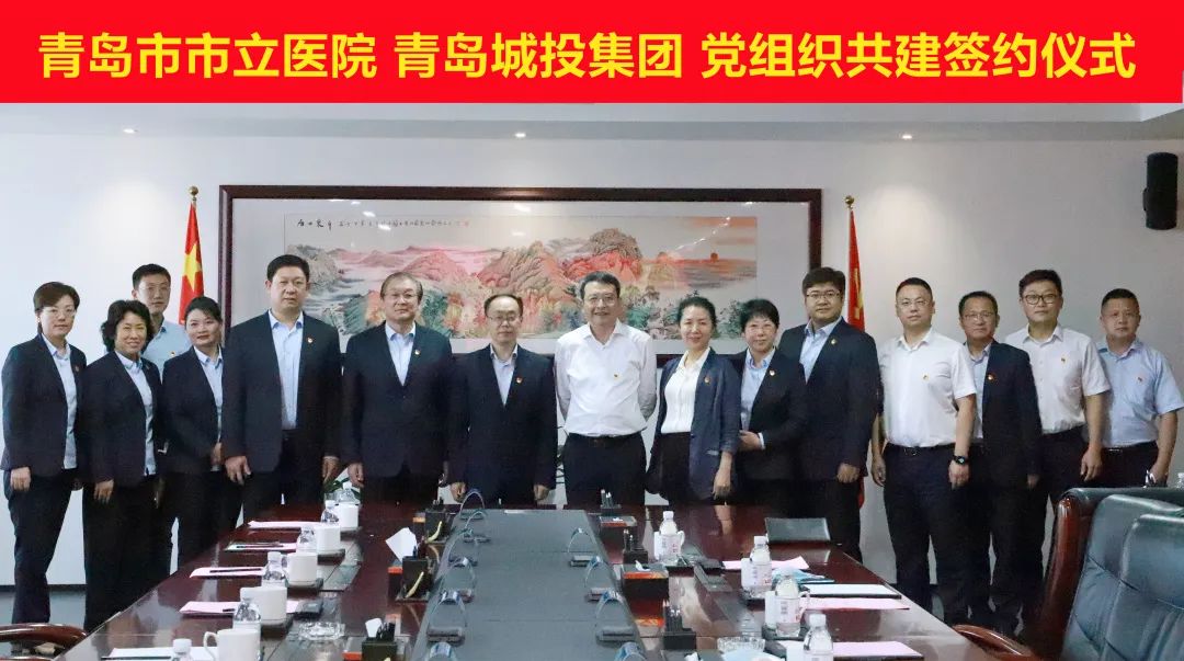 9月23日下午,青岛城投集团党委与青岛市立医院党委举行党组织共建签约仪式。市立医院党委书记杨九龙,党委副书记、总院长管军,党委副书记、副院长王国安,城投集团党委书记、董事长陈明东,党委委员、工会主席郭健出席签约仪式,双方有关部门和单位负责同志参加签约仪式。(图为签约仪式现场合影) 杨九龙介绍了市立医院发展概况和党建工作情况。他表示,市委作风能力提升年活动对市立医院提出了进企业的要求,市立医院将通过